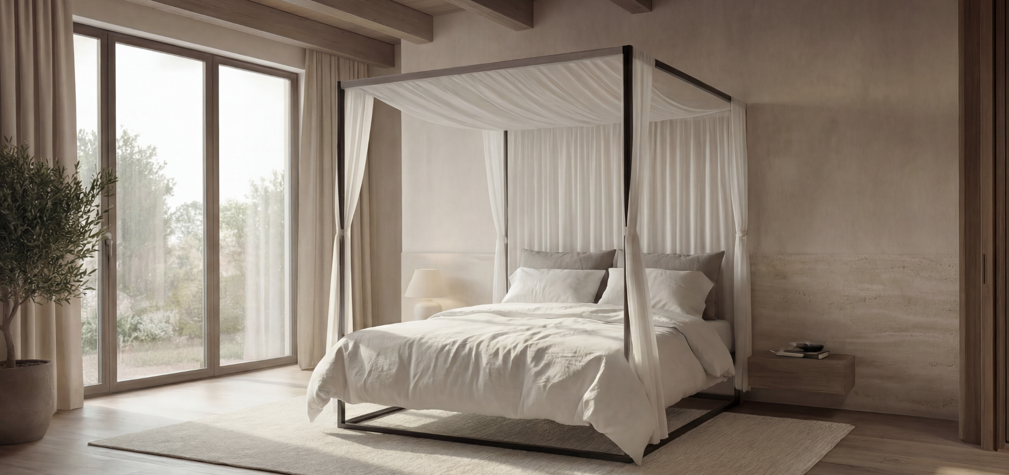Die Indoor-Edition unseres Sky Beds verwandelt Schlafzimmer, Gästezimmer oder Wellness-Bereiche in einen traumhaften Rückzugsort voller Ruhe. Die offene Form des Himmelbetts und die sanft fließenden Vorhänge verleihen dem Raum Leichtigkeit und schaffen gleichzeitig eine einzigartig angenehme, geborgene Atmosphäre. Ein stilvoller Rückzugsort für erholsame Nächte und Entspannung auf höchstem Niveau.
